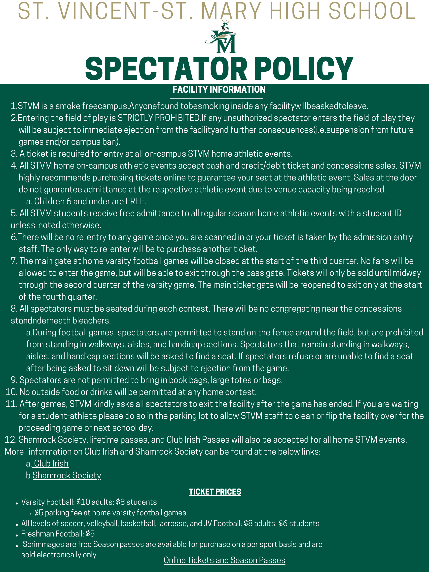 St. Vincent-St. Mary High School offers a comprehensive interscholastic athletic program designed to foster excellence, character, and sportsmanship in every student-athlete. Our goal is to develop not only skilled athletes but well-rounded individuals who demonstrate integrity in both victory and defeat. Through education-based athletics, we aim to shape young men and women into leaders who carry the life lessons learned on the playing field into all aspects of their lives. Â